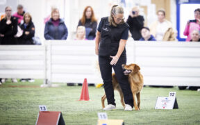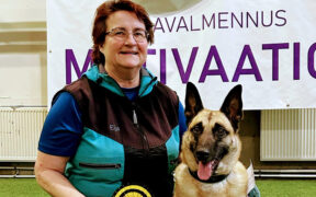 Suomen Eija Heinonen ja belgianpaimenkoira malinois Kutinan Xuurvili, “Ossi” sijoittuivat hopealle rally-tokon PM-kilpailussa.