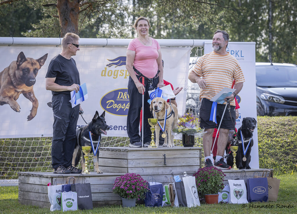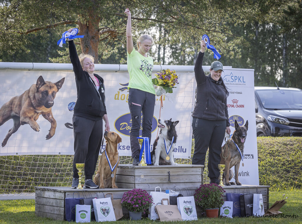 Etsintäkokeen mitalistit: 1) Minna Mynttinen ja Tending Valor 2) Emma Alve ja Kinship Wolverine 3) Pauliina Kaivonen ja Oikukas Boom Kah. Kuva: Hannele Rontu