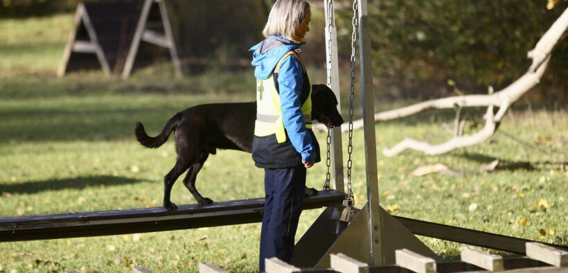 Kirsi Myöhänen ja Noseworks Ukko ketteryysosiossa vuoden 2024 raunioetsinnän SM-kilpailussa. Kuva: Petteri Jokela