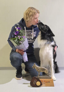 Susanna Starkin omistama Johan On Lio Messi Jr palkittiin Palveluskoiraliiton syyskokouksessa Vuoden palveluskoirana. Kuva: Maarit Saarto