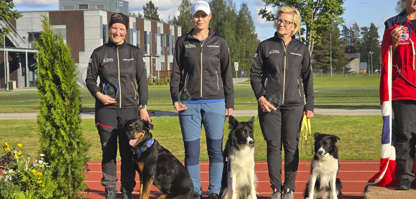 Suomen jälkijoukkueessa kilpailivat Anna-Kaisa Raja-aho ja Musanterin Yrtti, Susanna Stark ja Johan On Lio Messi Jr sekä Päivi Kapanen ja Tending Insight. Kuva: Maarit Saarto