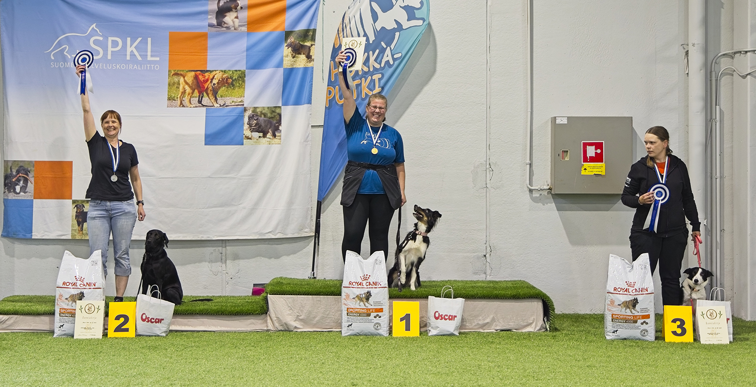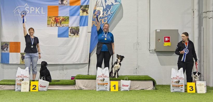 Yhteispisteillä 198 koirakko sai samat pisteet karsintaradalta täydet pisteet saaneen Marika Ruottisen ja labradorinnoutaja Justincase Burning Loven “Pihkan” kanssa. Tasapisteissä finaaliradan pisteet ratkaisevat, joten mestaruuden veivät SM-kisojen ensikertalaiset Arianna Gebbia ja Glenda. Pronssimitalin saivat Eva-Lotta Halonen ja bordercollie Heddwyn Blissful Becca.